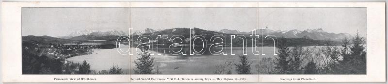 Beschreibung: 1923 Pörtschach am Wörthersee, Second World Conference YMCA Workers among Boys - 3-tiled folding panoramacard (Rb)