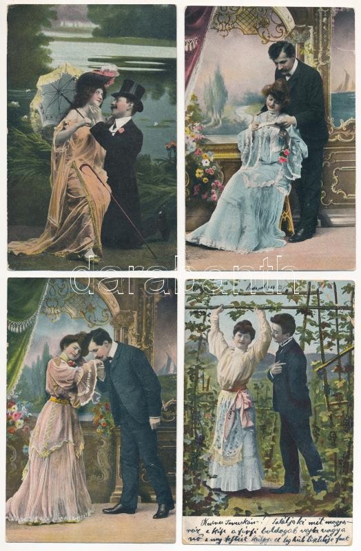 Beschreibung: 11 db RÉGI romantikus motívum képeslap vegyes minőségben: szerelmes párok / 11 pre-1910 romantic motive postcards in mixed quality: couples in love