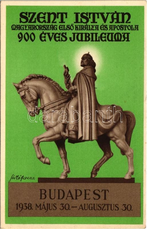 1938 Budapest XXXIV. Nemzetközi Eucharisztikus Kongresszus. Készüljünk a Magyar Kettős Szentévre! Szent István Magyarország első királya és apostola 900 éves jubileuma / Nonum centenarium s Stephani Regis Hungariae / 34th International Eucharistic Congress s: Fúró Ferenc
