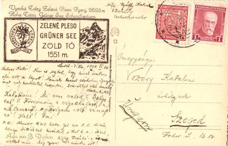 Tátra, Zöld-tó / lake (EK) https://www.darabanth.com/de/426-Fernauktion/426.0/Ansichtskarten/Slowakei~1500007/Tatra-Zold-to-lake-EK~II1052254