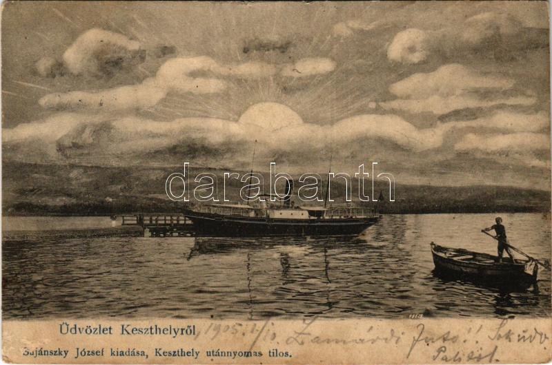 Beschreibung: 1905 Keszthely, "HELKA" gőzhajó. Sujánszky József kiadása (fl)