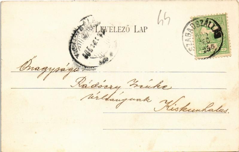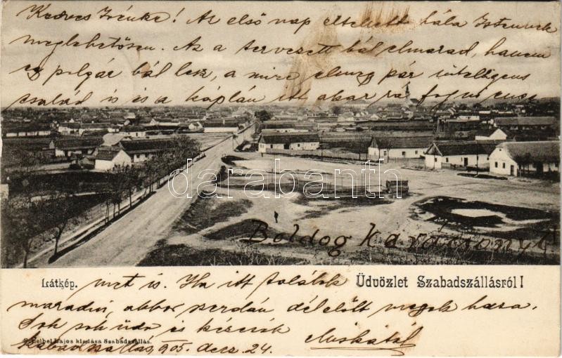 Beschreibung: 1905 Szabadszállás, látkép. Scheibel Lajos kiadása (apró szakadás / tiny tear)