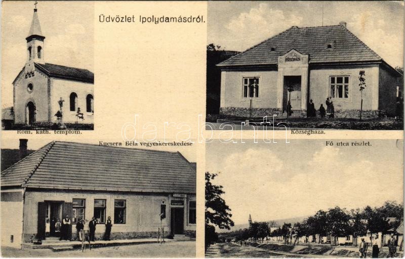 1934 Ipolydamásd, Római katolikus templom, községháza, Fő utca, Kucser... https://www.darabanth.com/de/426-Fernauktion/426.0/Ansichtskarten/Ungarn~1500005/1934-Ipolydamasd-Romai-katolikus-templom-kozseghaza-Fo-utca-Kucsera-Bela-uzlete~II2720653