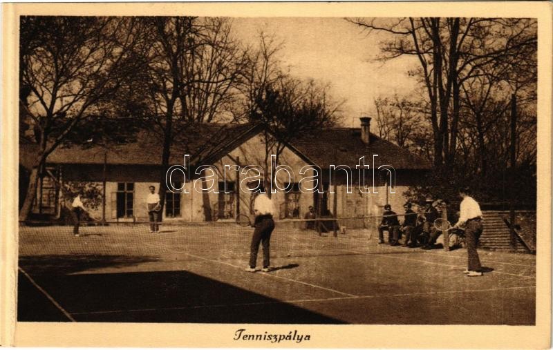 Budapest I. Ferenc József nevelőintézet és gimnázium, teniszpálya, sport pálya. Ilona utca 2-4. (Szabó Ilonka utca) - Goszleth udvari fényképész felvétele (képeslap füzetből / from postcard booklet)