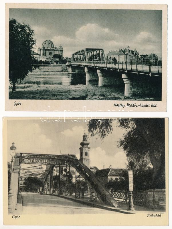 Beschreibung: Győr, Horthy Miklós közúti és Rába híd, zsinagóga - 2 db régi képeslap