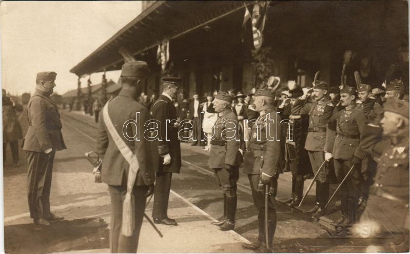 Pécs, Horthy Miklós látogatása a szerb megszállás alól felszabadult Pécsett 1921. október 5-én. Köszöntés a főpályaudvaron. Könnyű photo (kis szakadás / small tear)