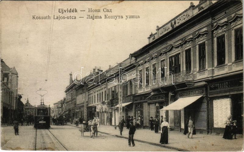 Újvidék, Novi Sad; Kossuth Lajos utca, villamos, Krausz Dávid, Schwarz... https://www.darabanth.com/de/426-Fernauktion/426.0/Ansichtskarten/Vojvodina~1500010/Ujvidek-Novi-Sad-Kossuth-Lajos-utca-villamos-Krausz-David-Schwarz-Vilmos-uzlete-street-vi~II2717509