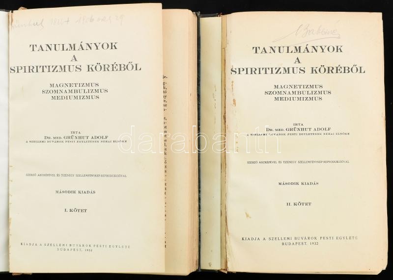 Grünhut Adolf: Tanulmányok a spiritizmus köréből. I-II. Bp. 1932. Szel... https://www.darabanth.com/de/426-Fernauktion/426.0/Bucher/Bucher-Andere-kuriositaten~1000024/Grunhut-Adolf-Tanulmanyok-a-spiritizmus-korebol-I-II-Bp-1932-Szellemi-Buvarok-Budapesti-~II2719625