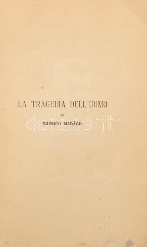 Beschreibung: Madách ember tragédiájának olasz fordítása Lyka Károlynak DEDIKÁLVA. Antonio Fonda fordítása, Fiume, 1908. Battara. Fűzve, üres papírborítóval