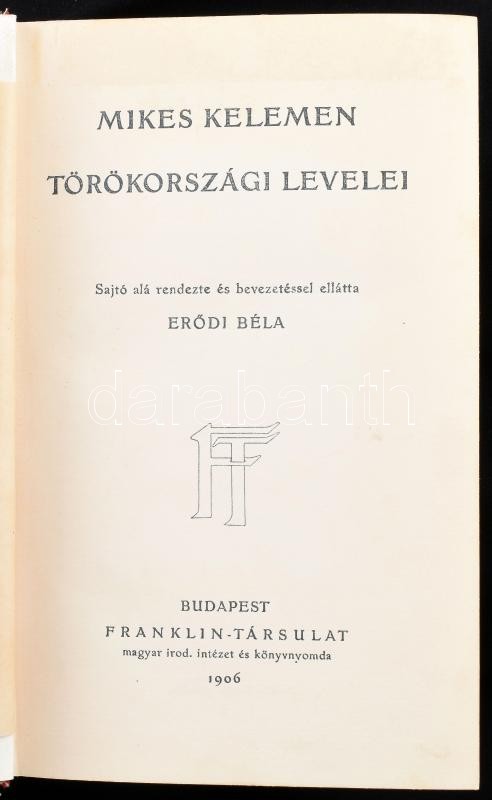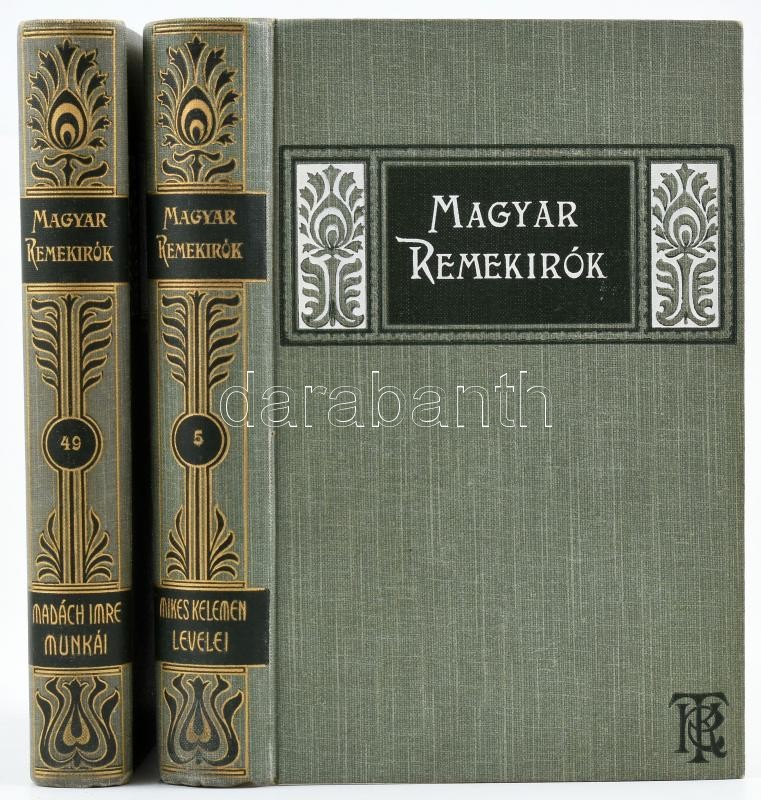 Magyar Remekírók sorozat 2 kötete: Madách Imre munkái. 49. köt.; Mikes Kelemen törökországi levelei. 5. köt. Szerk.: Erődi Béla. Bp., 1904-1906, Franklin-Társulat, 1 t. + 292 p., 1 t. + 378+(2) p. Kiadói szecessziós, aranyozott, festett egészvászon-kötés, Gottermayer-kötés, márványozott lapélekkel, helyenként kissé foltos, sérült lapokkal.