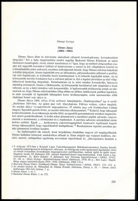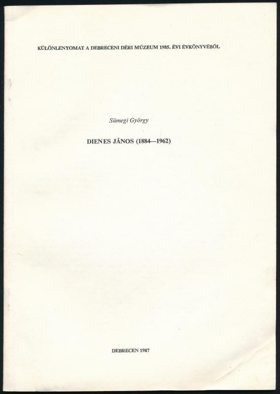 Sümegi György: Dienes János (1884-1962.) Különlenyomat a Debreceni Déri Múzeum 1985. évi évkönyvéből. Debrecen, 1987., Déri Múzeum, 335-371 p. Kiadói papírkötés.