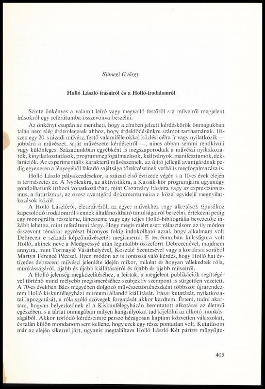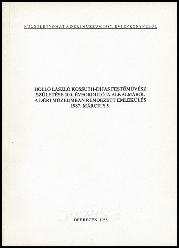 Sümegi György: Holló László írásairól és a Holló-irodalomról. Különlenyomat a Déri Múzeum 1987. évi évkönyvéből. Debrecen, 1988., Déri Múzeum, 405-452 p. Kiadói papírkötés.