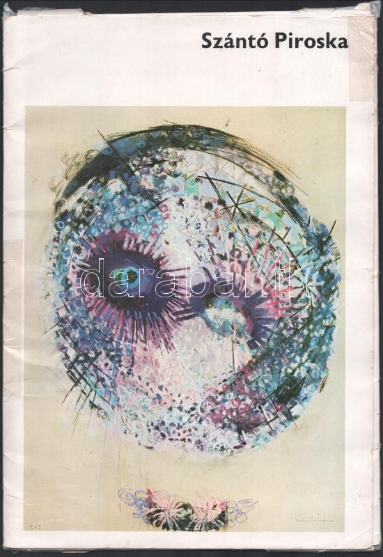 Szabó György: Szántó Piroska. Bp., 1976, Corvina, (Offset-ny.), 8 p+12 (reprodukciók) t. Magyar, angol, német és francia nyelven. Kiadói illusztrált, sérült papír mappában, hiánytalanul.