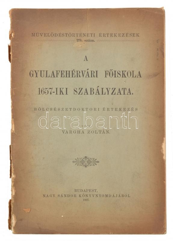 Vargha Zoltán: Gyulafehérvári főiskola 1657-iki szabályzata. Bp., 1907... https://www.darabanth.com/de/426-Fernauktion/426.0/Bucher/Bucher-Architektur-Kunst~1000012/Vargha-Zoltan-Gyulafehervari-foiskola-1657-iki-szabalyzata-Bp-1907-Nagy-Sandor-konyvnyom~II2718731