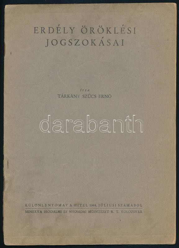 Tárkány Szűcs Ernő: Erdély öröklési jogszokásai. Különlenyomat a Hitel... https://www.darabanth.com/de/426-Fernauktion/426.0/Bucher/Bucher-Jura~1000008/Tarkany-Szucs-Erno-Erdely-oroklesi-jogszokasai-Kulonlenyomat-a-Hitel-1944-juliusi-szC3~II2722689