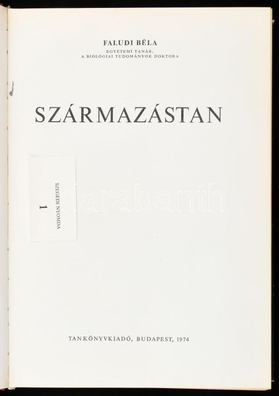 Faludi Béla: Származástan. Bp., 1974., Tankönyvkiadó. 3 melléklettel. ... https://www.darabanth.com/de/426-Fernauktion/426.0/Bucher/Bucher-Naturwissenschaft-Medizin~1000015/Faludi-Bela-Szarmazastan-Bp-1974-Tankonyvkiado-3-melleklettel-Kiadoi-nylon-kotes-k~II2715429