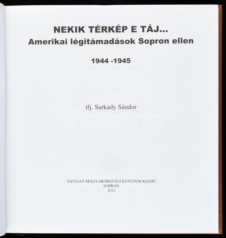 ifj. Sarkady Sándor: Nekik térkép e táj... Amerikai légitámadások Sopron ellen. 1944-1945. Sopron, 2013., Nyugat-Magyarországi Egyetem Kiadó. Fekete-fehér fotókkal illusztrált. Kiadói kopott kartonált papírkötés.