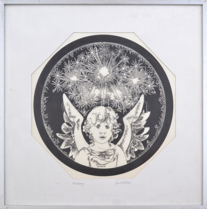 Beschreibung: Jurcsák László: Karácsony. Tus, papír. Jelzett. Üvegezett alumínium keretben, d: 27,5 cm