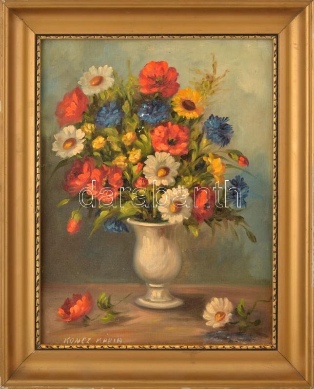 Koncz Mária: Virág csendélet. Olaj, karton, keretben, jelzett, 40x30cm https://www.darabanth.com/de/426-Fernauktion/426.0/Gemalde-und-Grafiken/Gemalde-und-Grafiken~500001/Koncz-Maria-Virag-csendelet-Olaj-karton-keretben-jelzett-40x30cm~II2714177