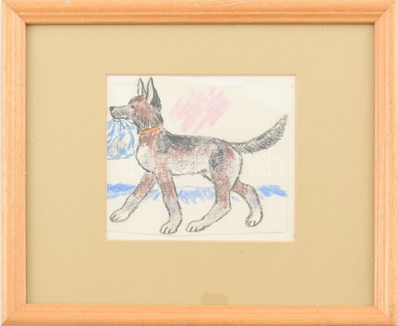 Beschreibung: Reich Károly (1922-1988): Kutya, mese illusztráció. Kréta, papír, jelzés nélkül, hátoldalán BÁV címkéjén feliratozott. Üvegezett fakeretben, 10×10,5 cm