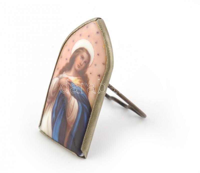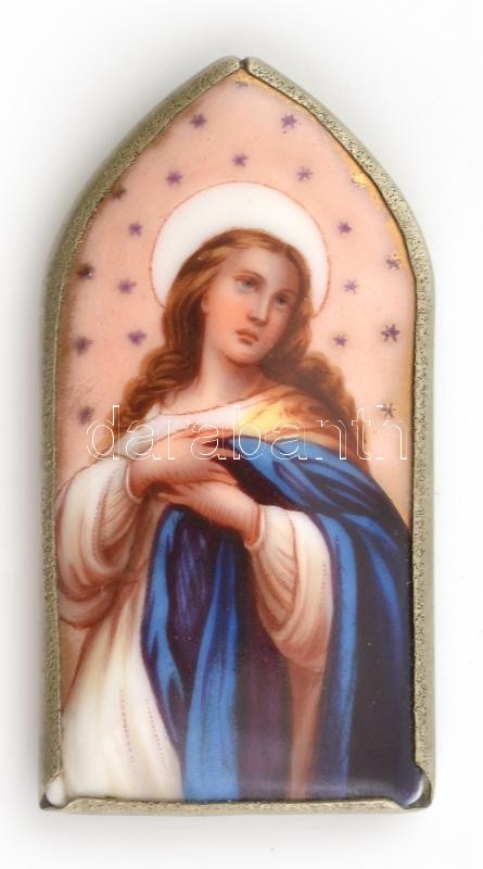 Kegytárgy, porcelán, alpakkába foglalva, Mária. m: 6 cm https://www.darabanth.com/de/426-Fernauktion/426.0/Kunst-Dokumente-andere-Sammelgebiete/Antik~500008/Kegytargy-porcelan-alpakkaba-foglalva-Maria-m-6-cm~II2714541