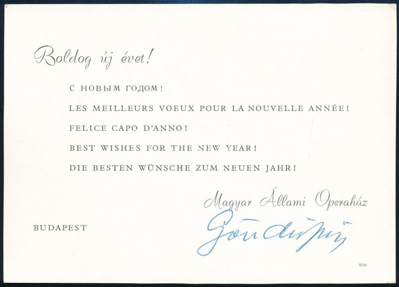 1976 Bp., Magyar Állami Operaház többnyelvű újévi üdvözlőlapja, aláírá... https://www.darabanth.com/de/426-Fernauktion/426.0/Kunst-Dokumente-andere-Sammelgebiete/Drucksachen~1000004/1976-Bp-Magyar-Allami-Operahaz-tobbnyelvu-ujevi-udvozlolapja-alairassal~II2722895