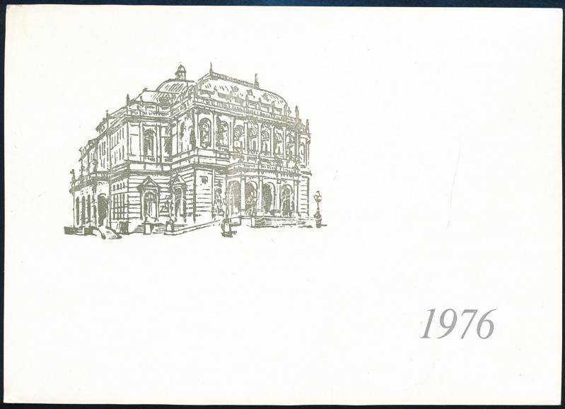 Beschreibung: 1976 Bp., Magyar Állami Operaház többnyelvű újévi üdvözlőlapja, aláírással