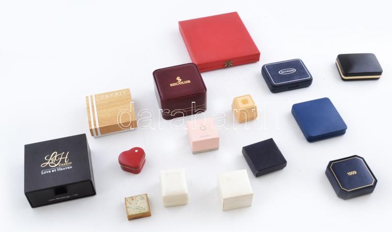 Beschreibung: 15 db különféle díszdoboz, tok (éremtartó, gyűrűs, ékszeres, stb.), vegyes méretben és állapotban