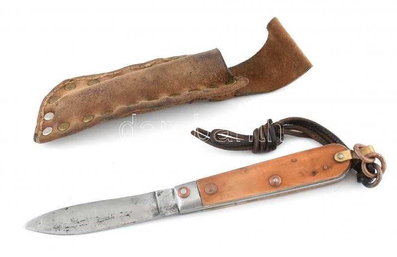 Paraszt egyedi készítésű zsebkés, bicska. Fa, réz. 22 cm Bőr tokkal https://www.darabanth.com/de/426-Fernauktion/426.0/Kunst-Dokumente-andere-Sammelgebiete/Flohmarkt~500014/Paraszt-egyedi-keszitesu-zsebkes-bicska-Fa-rez-22-cm-Bor-tokkal~II2709250