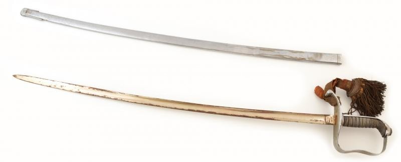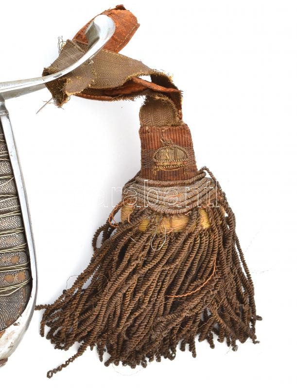 Beschreibung: M. kir. honvéd tiszti kard, XIX. sz. második fele, kissé sérült kardbojttal, fém hüvellyel. Jelzett, kopásnyomokkal, rozsdafoltokkal, h: 96 cm