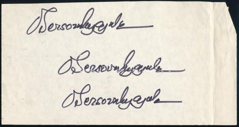 Beschreibung: Obersovszky Gyula (1927-2001) költő, író, újságíró, 1956-os forradalmár 3 db autográf aláírása egy lapon. 11x21 cm.