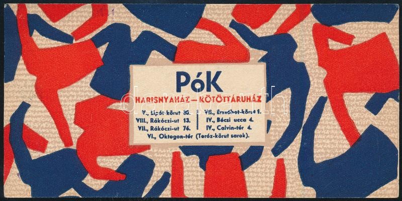 Pók Harisnyaház-Kötöttáruház számolócédula https://www.darabanth.com/de/426-Fernauktion/426.0/Kunst-Dokumente-andere-Sammelgebiete/Werbungen~500024/Pok-Harisnyahaz-Kotottaruhaz-szamolocedula~II2722885