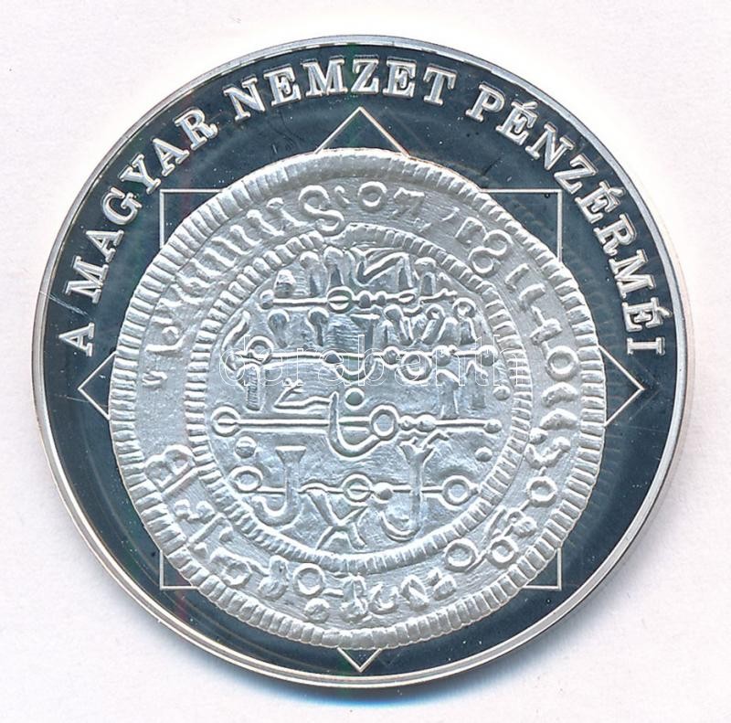 Beschreibung: DN "A magyar nemzet pénzérméi - Magyar pénz - arab felirat 1172-1196" Ag emlékérem, tanúsítvánnyal (10,37g/0.999/35mm) T:PP patina