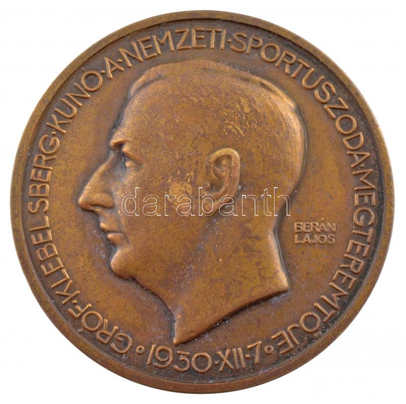 Berán Lajos (1882-1943) 1930. "Gróf Klebelsberg Kunó, a Nemzeti Sportuszoda megteremtője 1930.XII.7. / Magyar Úszó Szövetség 1907" Br emlékérem, peremén "Ludvig Budapest" gyártói jelzéssel (50mm) T:2
