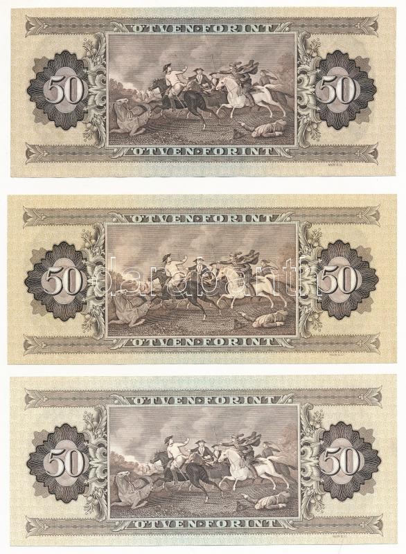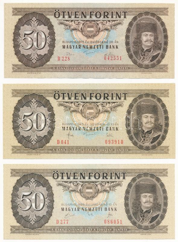 1975-1989. 50Ft (3xklf) T:II-III https://www.darabanth.com/de/426-Fernauktion/426.0/Numismatik/Ungarische-Banknoten~2000007/1975-1989-50Ft-3xklf-TII-III~II2715211