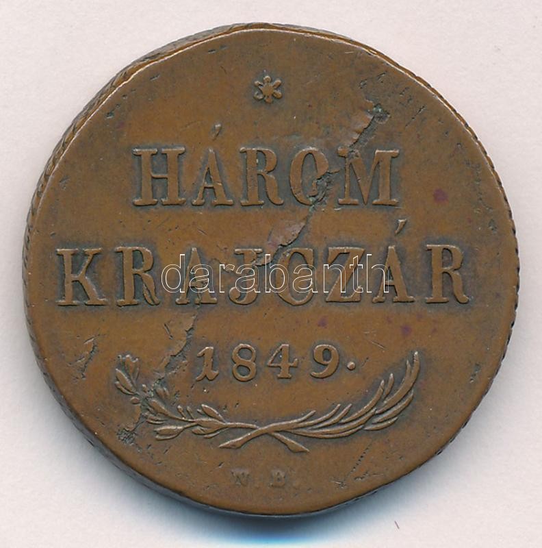Adamo B2 https://www.darabanth.com/de/426-Fernauktion/426.0/Numismatik/Ungarische-Munzen-und-Munzen-mit-ungarischem-Munzzeichen~2000008/1849NB-3kr-Cu-technologiai-hibas-veret-lapkahiba-T2-ph-Adamo-B2~II2719907