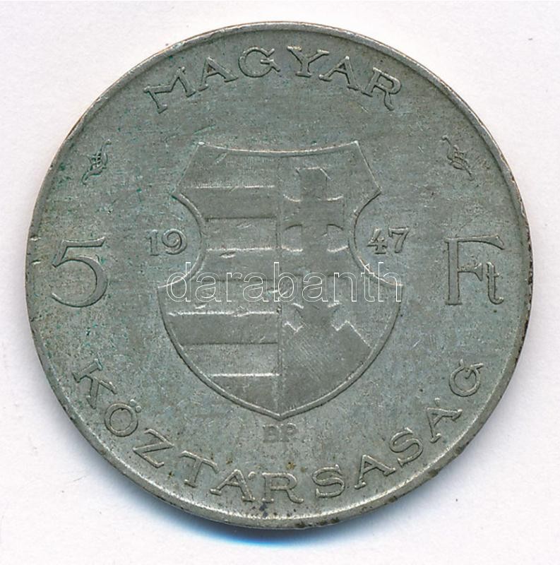 1947. 5Ft Ag "Kossuth" T:2-,3 patina Adamo F8.1 https://www.darabanth.com/de/426-Fernauktion/426.0/Numismatik/Ungarische-Munzen-und-Munzen-mit-ungarischem-Munzzeichen~2000008/1947-5Ft-Ag-Kossuth-T2-3-patina-Adamo-F81~II2693327