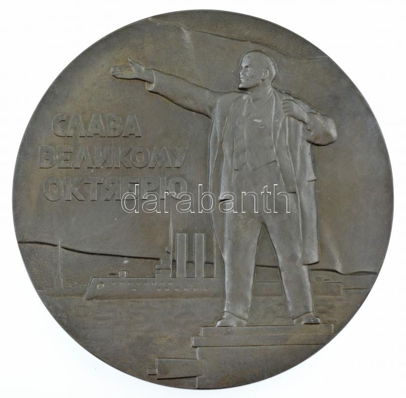 Szovjetunió ~1970. "Hála a Nagy Októbernek" nagyméretű, egyoldalas, felakasztható fém plakett (150mm) T:2 kis karc