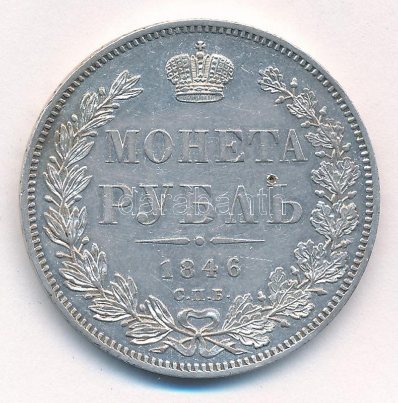 Orosz Birodalom 1846. 1R Ag "I. Miklós" (20,76g) T:2,2- kis patina, karc, ü. / Russian Empire 1846. 1 Ruble Ag "Nicholas I" (20,76g) C:XF,VF small patina, scratch, ding Krause C#168.1
