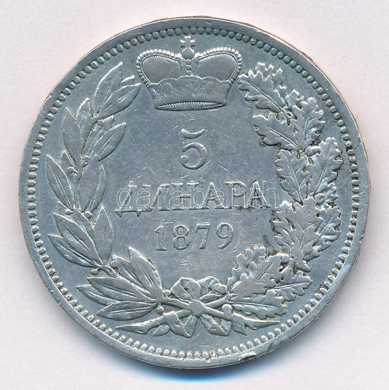 Serbia 1879. 5 Dinara Ag "Milan Obrenović IV" C:VF edge error