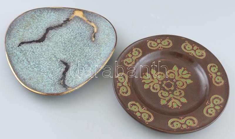 Beschreibung: 2 db jelzett kerámia dísztányér, néhány kis lepattanással, kopásnyomokkal, d: 25 - 27 cm