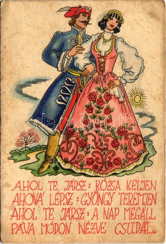 Ahol te jársz: Rózsa keljen... Magyar folklór / Hungarian folklore art... https://www.darabanth.com/de/427-Fernauktion/427.0/Ansichtskarten/Folklore~1000022/Ahol-te-jarsz-Rozsa-keljen-Magyar-folklor-Hungarian-folklore-art-postcard-fl~II2733840