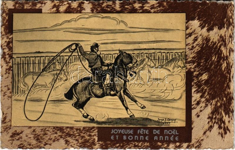 Beschreibung: 1952 Joyeuse Fete de Noel et Bonne Année / Christmas and New Year greeting art postcard s: Jorge D. Campos (EB)