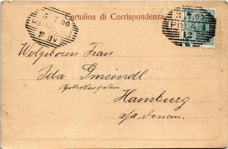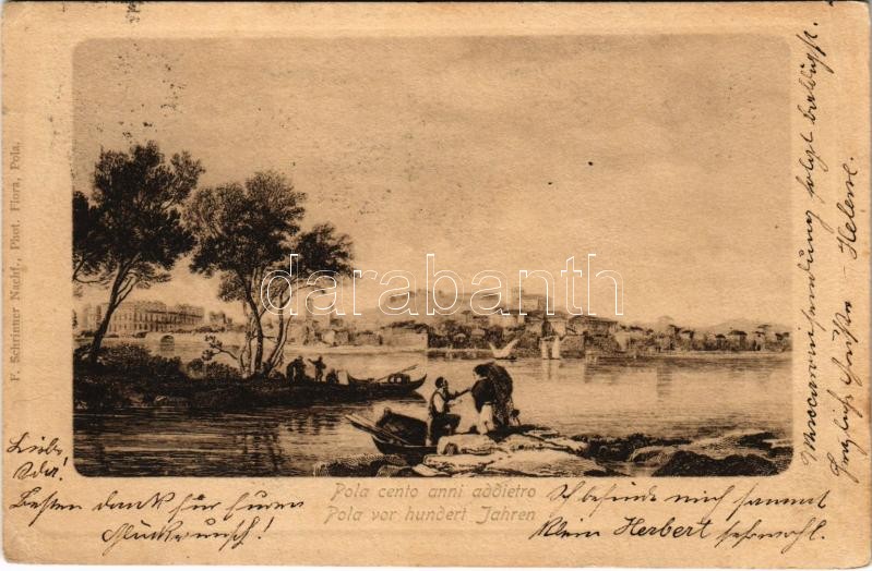 Beschreibung: 1900 Pola, Pula; Pola cento anni addietro / Pola vor hundert Jahren / 100 évvel ezelőtt. F. Schrinner utóda kiadása. Phot. Flora / 100 years earlier (EK)