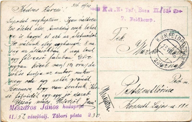Beschreibung: 1916 Fiume, Rijeka; Porto / port, steamships + "K.u.K. Inf. Baon II. 52. 7. Feldkomp" "Mészáros János hadapród II/52. zászlóalj Tábori posta 230" (EK)