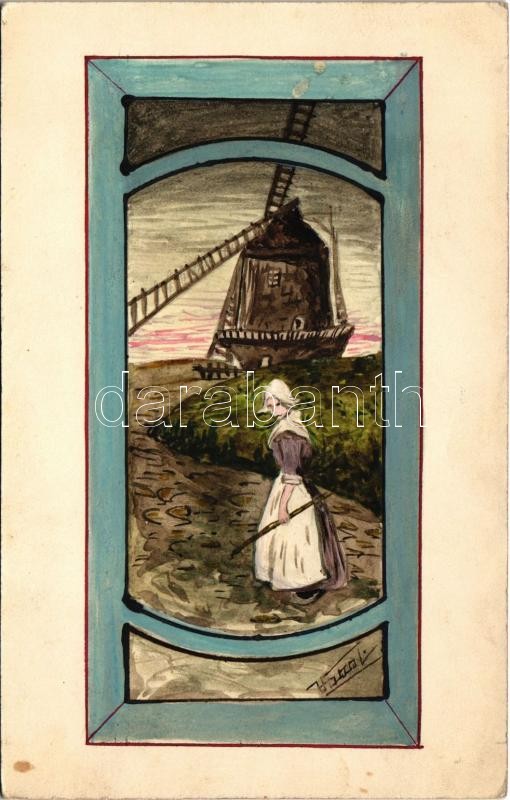 1908 Kézzel rajzolt és festett művészlap szélmalommal / Hand-drawn and... https://www.darabanth.com/de/427-Fernauktion/427.0/Ansichtskarten/Kunstlerkarten~1000037/1908-Kezzel-rajzolt-es-festett-muveszlap-szelmalommal-Hand-drawn-and-hand-painted-art-postcar~II2727666