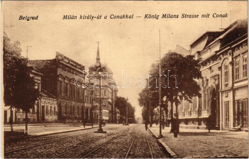 Belgrád, Belgrade, Beograd; Milán király út a Konakkal. Vasúti levelez... https://www.darabanth.com/de/427-Fernauktion/427.0/Ansichtskarten/Serbien~1000093/Belgrad-Belgrade-Beograd-Milan-kiraly-ut-a-Konakkal-Vasuti-levelezolaparusitas-Konig~II2724757