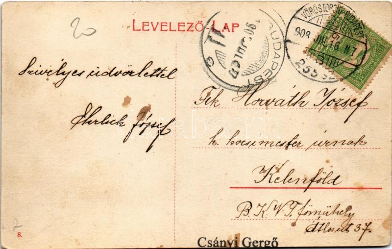 Beschreibung: 1908 Déva, vár / castle + "VÖRÖSTORONY - BUDAPEST 255. SZ. B" vasúti mozgóposta bélyegző (fl)