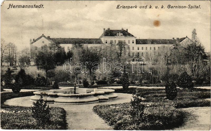 1911 Nagyszeben, Hermannstadt, Sibiu; Erlenpark und k.u.k. Garnison-Spital / Erlen park, Osztrák-magyar helyőrségi kórház. Verlag Karl Graef / park, K.u.K. military garrison hospital (EM)