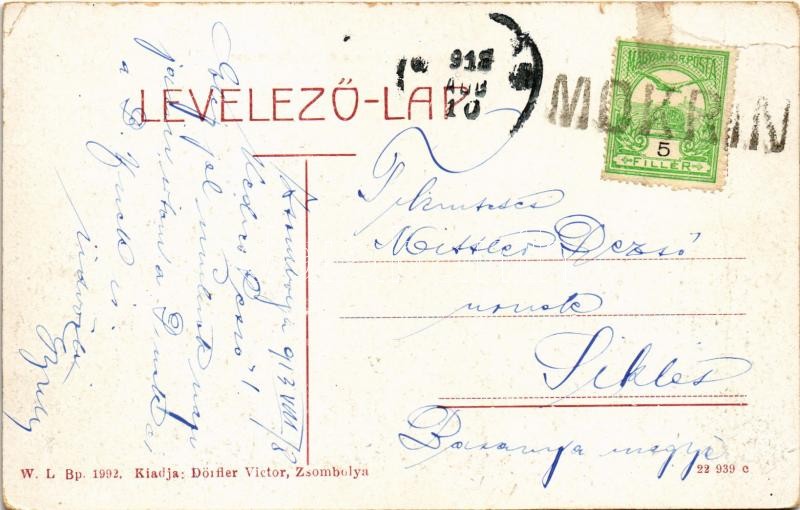 Beschreibung: 1913 Zsombolya, Hatzfeld, Jimbolia; Gróf Csekonics kastély és Flórián szobor, piac. W.L. Bp. 1992. Dörfler Victor kiadása / castle, statue, market (r)